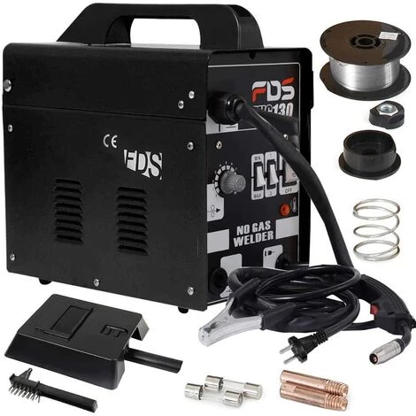 Kit de soudeur MIG130 portable et de qualité professionnelle. Conception compacte et légère, Portable parfaitement et facile à transporter Avec ce soudeur, les électrodes de gaine peuvent être soudées professionnellement et de haute qualité. Avec le bouton rotatif, le nombre d’ampères peut être ajusté facilement et avec précision.