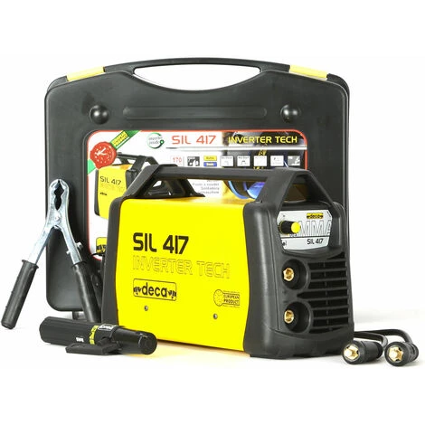 La soudeuse à courant continu direct ou inverse DECA SIL 417 est utilisée avec des électrodes de base, rutilic, inox, fonte, etc. sur des matériaux métalliques de toutes sortes. Il se distingue par les caractéristiques de construction suivantes: Adapté à un usage amateur, il est alimenté par le courant électrique fourni par le réseau domestique s’il est utilisé avec un ampérage réduit. l’utilisation du passe-temps implique cependant des temps d’utilisation continus pas trop longtemps puisque, une fois le cycle d’utilisation épuisé, la machine à souder entre automatiquement en protection pour se refroidir Dispositif TIG SCRATCH avec coup de griffe qui permet le soudage TIG sur cuivre, acier inoxydable, nickel, etc. avec la certitude d’obtenir des travaux précis et finement finis Le dispositif HOT START fournit une augmentation de puissance supplémentaire pour faciliter la frappe d’arc et est particulièrement utile lorsque l’on travaille avec des électrodes qui ont un allumage difficile Dispositif ARC FORCE activé en augmentant l’ampérage, et par conséquent la capacité de pénétration de l’électrode, pour éviter que l’électrode ne colle à la pièce à souder Dispositif ANTI-COLLAGE qui provoque l’arrêt de la machine à souder dans le cas où l’électrode doit coller à la pièce à souder et permet un retrait facile de l’électrode sans risque d’endommager la pince Dispositif de protection thermostatique qui protège les parties vitales de la soudeuse en cas de surchauffe ou de surtension. Il peut également être alimenté par un générateur de moteur et tolérer une oscillation de la tension d’alimentation de 15% Le DECA SIL 417 est fourni dans un coffret pratique et complet avec tous les accessoires qui vous permettent de commencer immédiatement le soudage: pince de masse, porte-électrode et câbles de soudage. Convient également pour un usage domestique: OUI Tension secteur: 230V ~ 50-60 Hz Plage de réglage actuelle: 10 – 170 Amp Cycle d’utilisation à 20 ° C: 40% à 170 Ampères Cycle d’utilisation à 40 °: 8% à 160 Amp Tension de vide: 102 V Consommation électrique: 4,5 kW MAX Fusibles secteur: 16 Amp Électrodes utilisables: 1,6 – 4 mm Ø Dimensions: 132 x 335 x 206 mm Poids: 3,6 kg