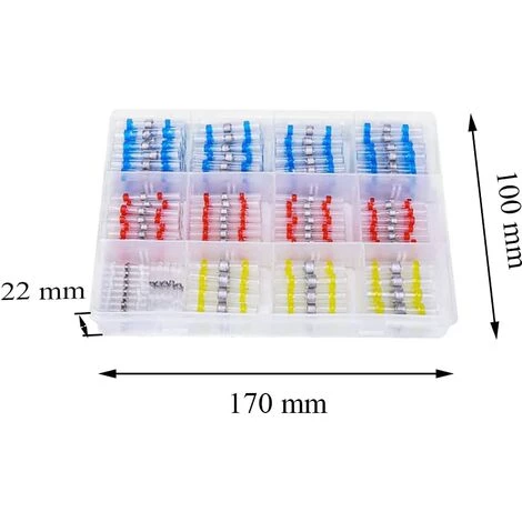 300 joints de soudure de connecteur de fil : une boîte de 300 joints de soudure de connecteur de fil, rouge 105 bleu 90 blanc 75 jaune 30.