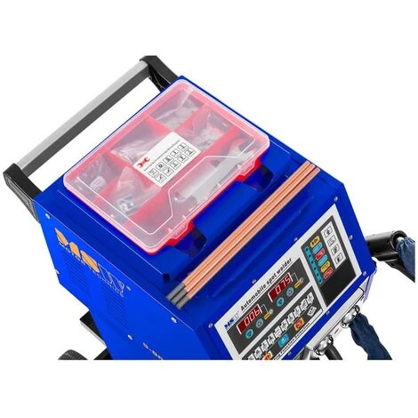 Grâce aux accessoires fournis, vous pourrez souder des écrous ronds ou triangulaires, des goupilles, des vis et des fils d’acier avec la fonction adaptée pour ensuite pouvoir éliminer les bosses progressivement au moyen d’une pince ou d’un marteau de débosselage. Vos réglages peuvent être effectués avec précision et rapidement sur un panneau de commande numérique. Le mode automatique correspond à un courant de soudage dont la puissance peut s’élever jusqu’à 5000 A pendant le temps de soudage prédéfinis. En mode manuel, le courant de soudage peut être réglé indépendamment du temps de soudage et ce dernier peut être déterminé entre 0,01 et 999 secondes.