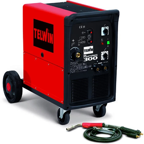 Poste à souder Telwin Mastermig 300 Poste de soudage à fil MIG-MAG/FLUX/BRASAGE avec dévidoir de fil amovible, indiqué pour une utilisation en milieu industriel. Utilisation universelle pour différents types de matériaux tels que acier, acier inox, aciers à haute résistance et aluminium. Caractéristiques: Très robuste Nombre élevé de phases de régulation de la tension de l’arc Régulation du temps de pointage Deuxpositions de réactance Protection thermostatique Les rallonges (en option) permettent d’accroîtrele rayon d’action en portant à 10 mètres la distance entre dévidoir de fil et générateur de courant. Fourni avec accessoires de soudage MIG-MAG. Composition: Poste à souder Mastermig 300 Câble de masse DX50 Torche MIG/MAG MT25 – 3m Galet: 0.6 – 0.8 mm et 1 – 1.2 mm Détendeur avec 2 manomètres Extension de faisceau 1.5 m Caractéristiques: Tension: 230 / 400 V Courant d’alimentation: 16 / 10 A Courant de soudage MIG/MAG: 40-300 A Fil acier: 0.6 à 1.2 mm Fil inox: 0.6 à 1.2 mm Fil alu: 0.8 à 1.2 mm Fil brasage: 0.8 à 1.2 mm Poids Bobine max: 15 Kg de bobine max: 300 mm Dévidoir amovible avec 4 rouleaux d’entrainement Poids: 96 Kg Dimensions: Longueur: 94.4 cm Largeur: 56.5 cm Hauteur: 83 cm