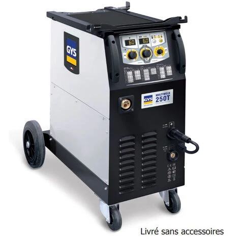 - Aide au soudage : tableau en façade aidant l’utilisateur à régler sa tension et son diamètre de fils d’apport selon l’épaisseur du matériau à souder.