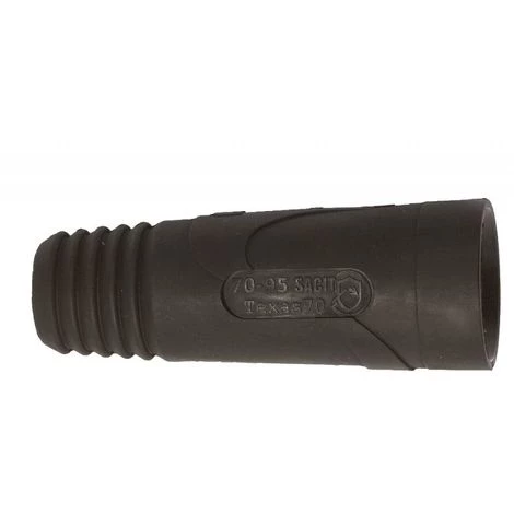 Raccord universel femelle « quart de tour » pour câble 95 mm² Ampérage maxi: 500 A à 60% et 600 à 35% Corps en laiton Manchon en caoutchouc Serrage du câble par 2 vis BTR Conforme à la norme EN 60974-12