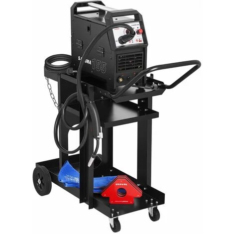 Le chariot de soudage se distingue par sa grande stabilité et est fait d’acier laqué noir durable. Grâce à cela, avec ce chariot, vous pourrez transporter bien d’autres équipements en plus du poste à souder, jusqu’à un poids total de 75 kg. Un mode d’emploi est fourni pour faciliter le montage du chariot de soudage et de ses compartiments.
