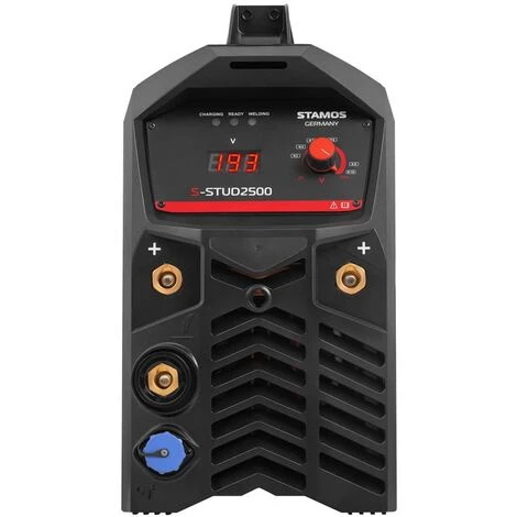 Les soudures de goujon sont des opérations exigeantes dans le domaine de la métallurgie car elles relient des pièces de métal en faisant preuve d’une grande résistance. Avec le poste de redressage S-STUD2500 de Stamos Germany, soudez vis, goupilles ou cylindres à d’autres parties métalliques de manière précise et solide et ce, en quelques millisecondes. Le poste de redressage utilise le procédé de soudage avec amorçage de pointe CD. Pour cela, la pointe d’allumage du goujon doit être posée contre la pièce d’ouvrage, le courant de soudage augmente très rapidement et fait fondre la pointe d’allumage. L’arc électrique s’amorce ensuite et commence à faire fondre la pièce d’ouvrage directement sous le goujon. L’arc électrique s’amorce via une simple pression et les deux parties métalliques seront alors instantanément soudées ensemble. Le temps de soudure s’élève à moins de 3 ms. Pour souder avec le poste de redressage S-STUD2500, aucune préparation préalable, comme des perforations, des poinçonnages, des estampages ou autres, n’est nécessaire. Il permet de souder différents métaux et est adapté pour la plupart des métaux comme l’acier inoxydable, l’aluminium, le cuivre ou le titane. Le poste de redressage peut être utilisé pour souder des feuilles de métal, des boitiers et capots de protection et d’autres types de métaux. Le poste de redressage soude avec un condensateur d’une capacité de 108000µF et une énergie de stockage de 2500 J et peut même relier des métaux durs ensemble.