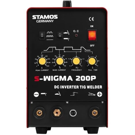 Le poste à souder TIG S-WIGMA 200P de la marque Stamos Germany se caractérise par sa conception alliant robustesse et fiabilité. Elle fonctionne avec une tension d’entrée de 230 V et pèse seulement 13,15 kg pour des dimensions de 36,50 x 16 x 24 cm grâce à l’utilisation de matériaux légers mais solides. Ainsi la machine à souder TIG S-WIGMA 200P est l’une des machines à souder TIG la plus légère équipée d’une fonction pulse. Le courant de soudage de la machine à souder TIG S-WIGMA 200P est réglable sur une plage de 5 à 200 ampères ce qui offre à l’appareil une grande flexibilité d’utilisation.
