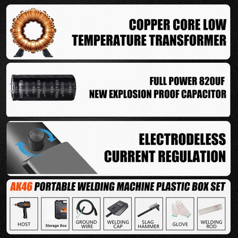 Cette machine à souder portable est facile à utiliser, que vous soyez un amateur professionnel ou que vous commenciez tout juste à apprendre le soudage, vous pouvez l’utiliser rapidement et en toute sécurité. Avec des fonctions multiples telles que l’affichage numérique à LED, la régulation du courant sans électrode, etc., allumez-vous et profitez-en, il ne vous laissera pas tomber.
